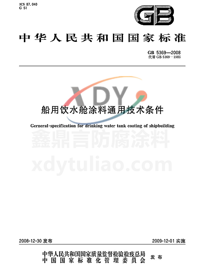GB 5369-2008船用飲水艙涂料通用技術(shù)條件國家標(biāo)準(zhǔn)