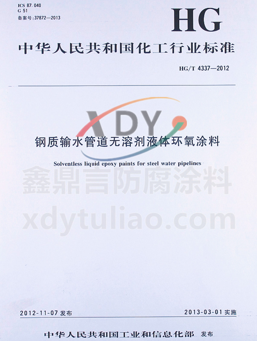 HG/T 4337-2012鋼質(zhì)輸水管道無溶劑液體環(huán)氧涂料標(biāo)準(zhǔn)