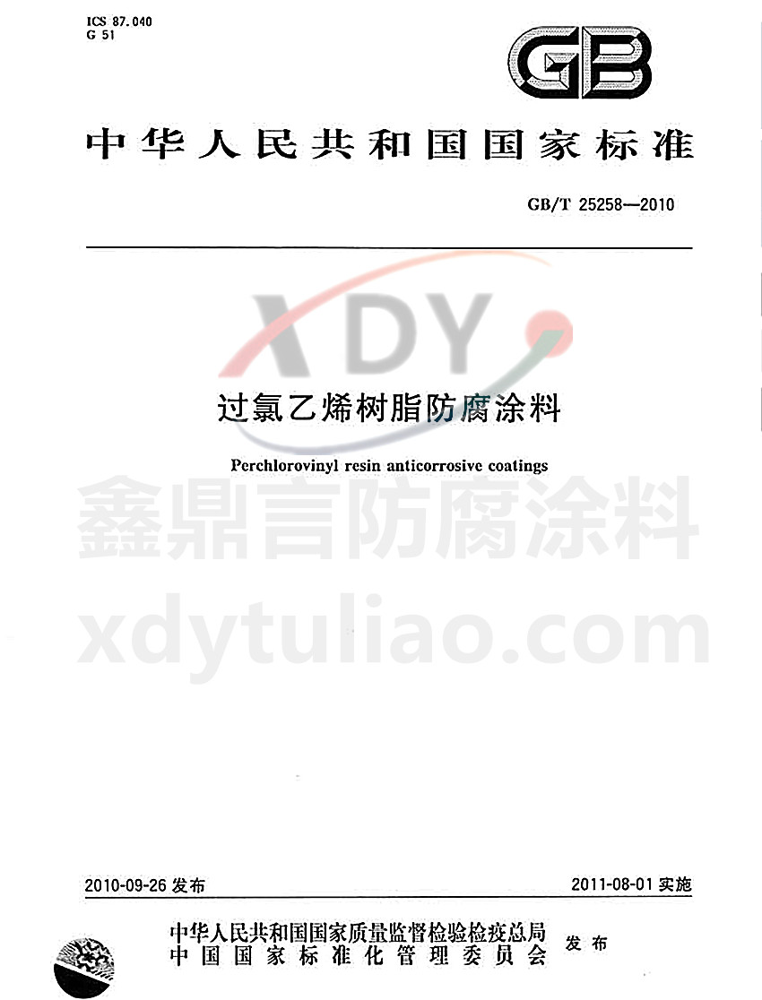 過氯乙烯樹脂防腐涂料國家標(biāo)準(zhǔn)GB/T 25258-2010