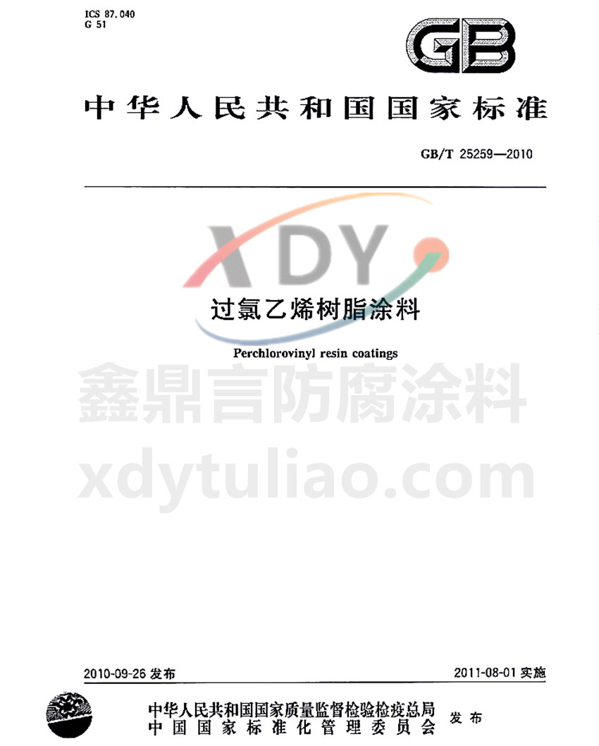 過氯乙烯樹脂涂料國家標(biāo)準(zhǔn)GB/T25259-2010