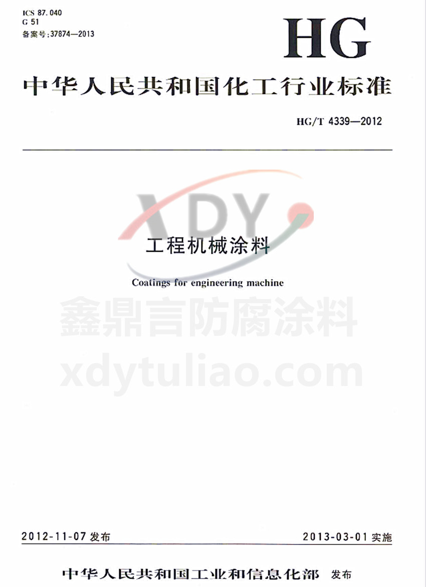 HG/T 4339-2012工程機(jī)械涂料標(biāo)準(zhǔn)ICS87.040 G51 備案號(hào):37874-2013 HG 中華人民共和國化工行業(yè)標(biāo)準(zhǔn) HG/T 4339-2012 工程機(jī)械涂料Coating for engineering machine 2012-11-07發(fā)布 2013-03-01實(shí)施 中華人民共和國工業(yè)和信息化部 發(fā)布 本標(biāo)準(zhǔn)規(guī)定了工程機(jī)械涂料產(chǎn)品的分類、要求、試驗(yàn)方法、檢驗(yàn)規(guī)則、標(biāo)志、包