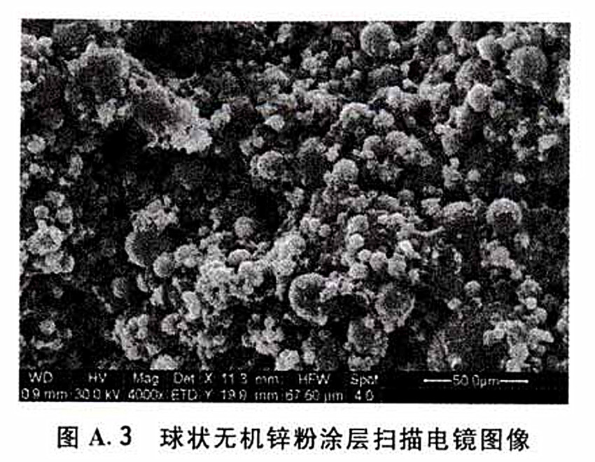 圖A.3 球狀無機鋅粉涂層掃描電鏡圖像