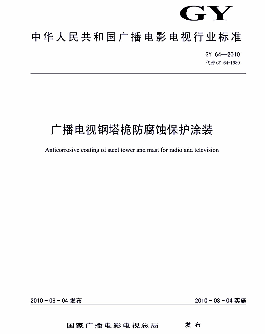 廣播電視塔鋼結(jié)構(gòu)防腐漆配套是小編參考GY 64-2010《廣播電視鋼塔桅防腐蝕保護涂裝》整理出來的,大家可以放心參考。更過防腐涂料配套、施工工藝和執(zhí)行標準等信息,可以查看鑫鼎言防腐涂料網(wǎng)站。