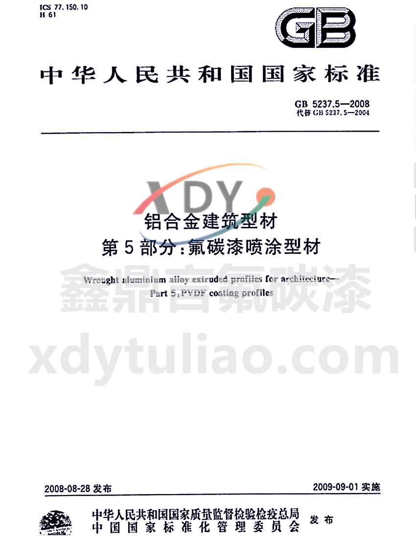 GB 5237.5-2008鋁合金建筑型材 第5部分:氟碳漆噴涂型材