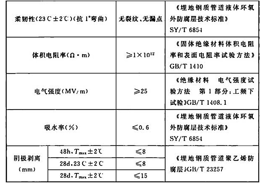 表2.2-1 液體環(huán)氧補口防腐層性能指標(2A)