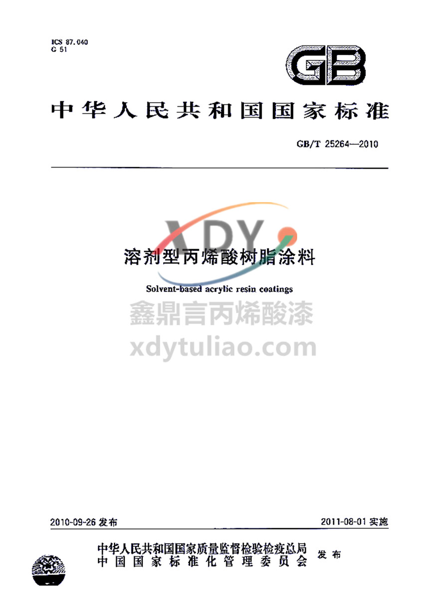 溶劑型丙烯酸樹(shù)脂涂料國(guó)家標(biāo)準(zhǔn)GB/T 25264-2010